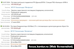 На офіційному сайті держзакупівель цих записів немає, як немає більшості з них і на сайтах-агрегаторах – «Закупки 360», «Ростендер» і подібних. На запитання Радіо Свобода про мету регулярних закупівель дронів та систем РЕБ «Мосфільм» не відповів. Водночас нам вдалося дізнатися, що в діячів кіно є послідовники у музейній сфері: у Ленінградській області одразу кілька державних музеїв регулярно закуповують обладнання для «потреб СВО», зокрема, формально заборонені до використання на території РФ термінали супутникового інтернету компанії Starlink.